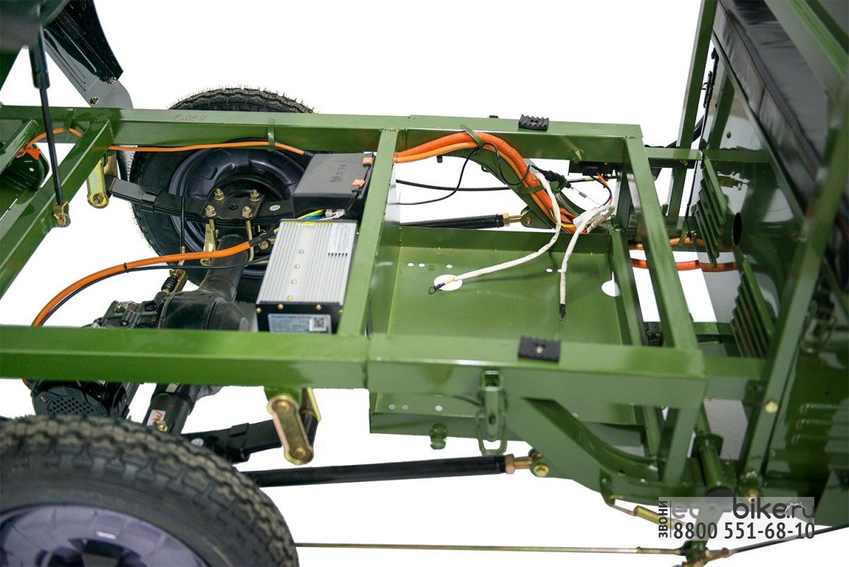• оснащен 1000 ваттным мотором, которые разгоняет электрическую тележку до 25 км/ч;