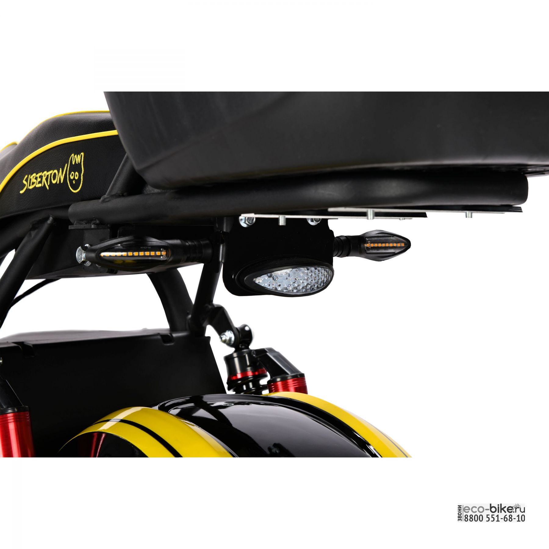 Электроскутер SIBERTON PRO 2500W - идеальный по показателям агрегат. Мощность мотор-колеса с мощностью 2500 В и максимальная скорость разгона до 61км\ч для быстрой и экологичной езды без автомобильных пробок. Емкая батарея в 21 Ач позволяет скутеру преодолевать расстояния до 60 километров без дополнительной подзарядки для длительных прогулок без страха внезапного разряда. Аккумулятор защищён от перезаряда и перегрузки. Широкая подножка и прочная конструкция позволяют скутеру выдерживать нагрузку до 260 килограмм что дарит возможность использовать электроскутер SIBERTON PRO 2500W людям разной комплекции, роста и возраста.  Имеет удобное управление и переключатель передач, расположенный на руле. Оборудован двойным сиденьем для перевозки пассажиров.