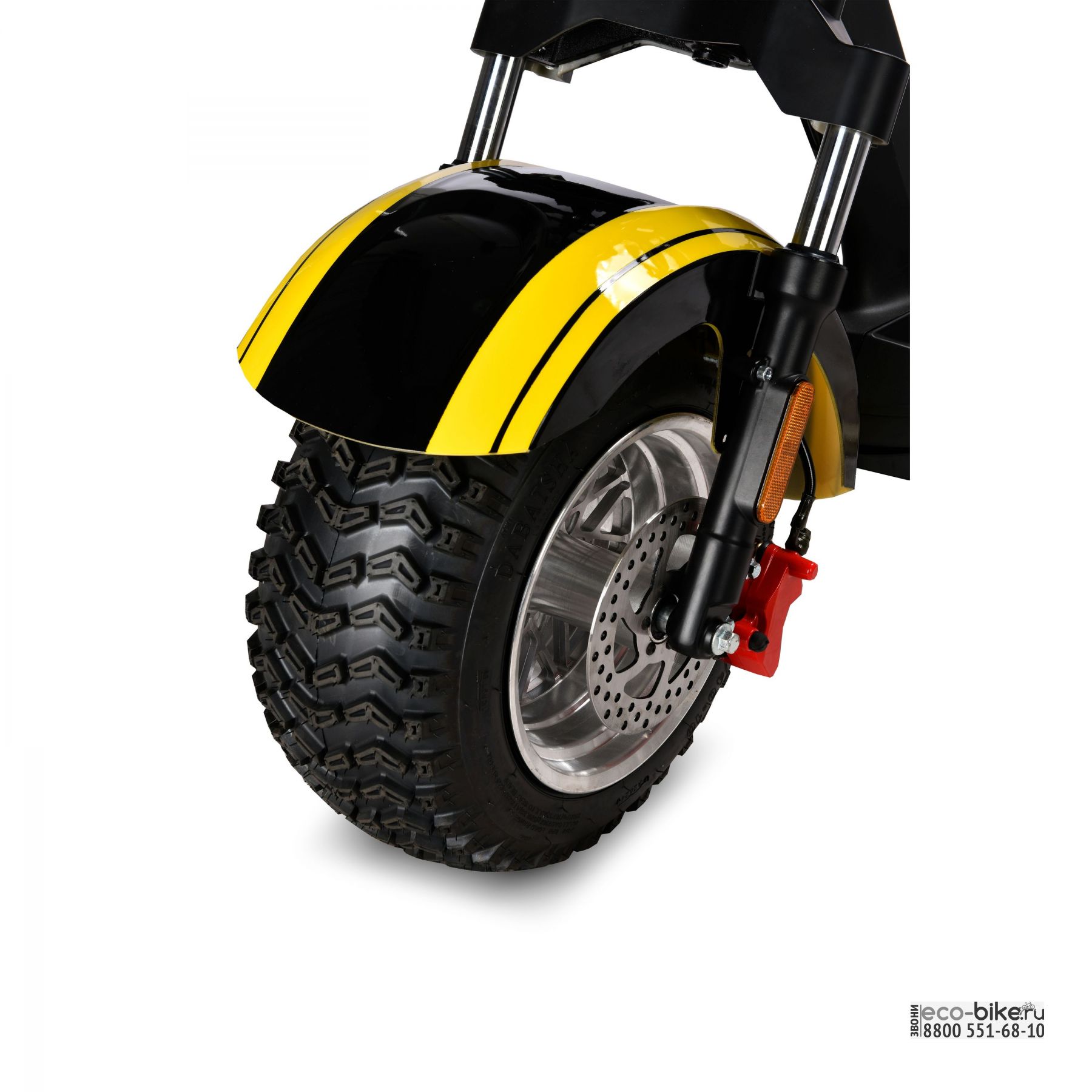• шоссейная резина на 10-дюймовых колесах с низким профилем позволяет круглогодично использовать скутер и без проблем передвигаться по бездорожью и пересеченной местности;