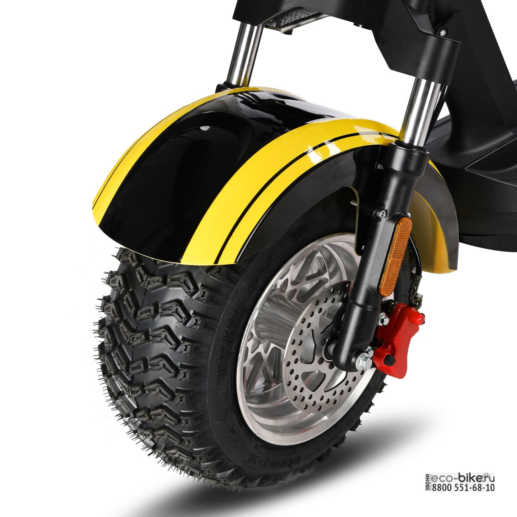 - шоссейная резина на 10-дюймовых колесах с низким профилем позволяет круглогодично использовать скутер и без проблем передвигаться по бездорожью и пересеченной местности;