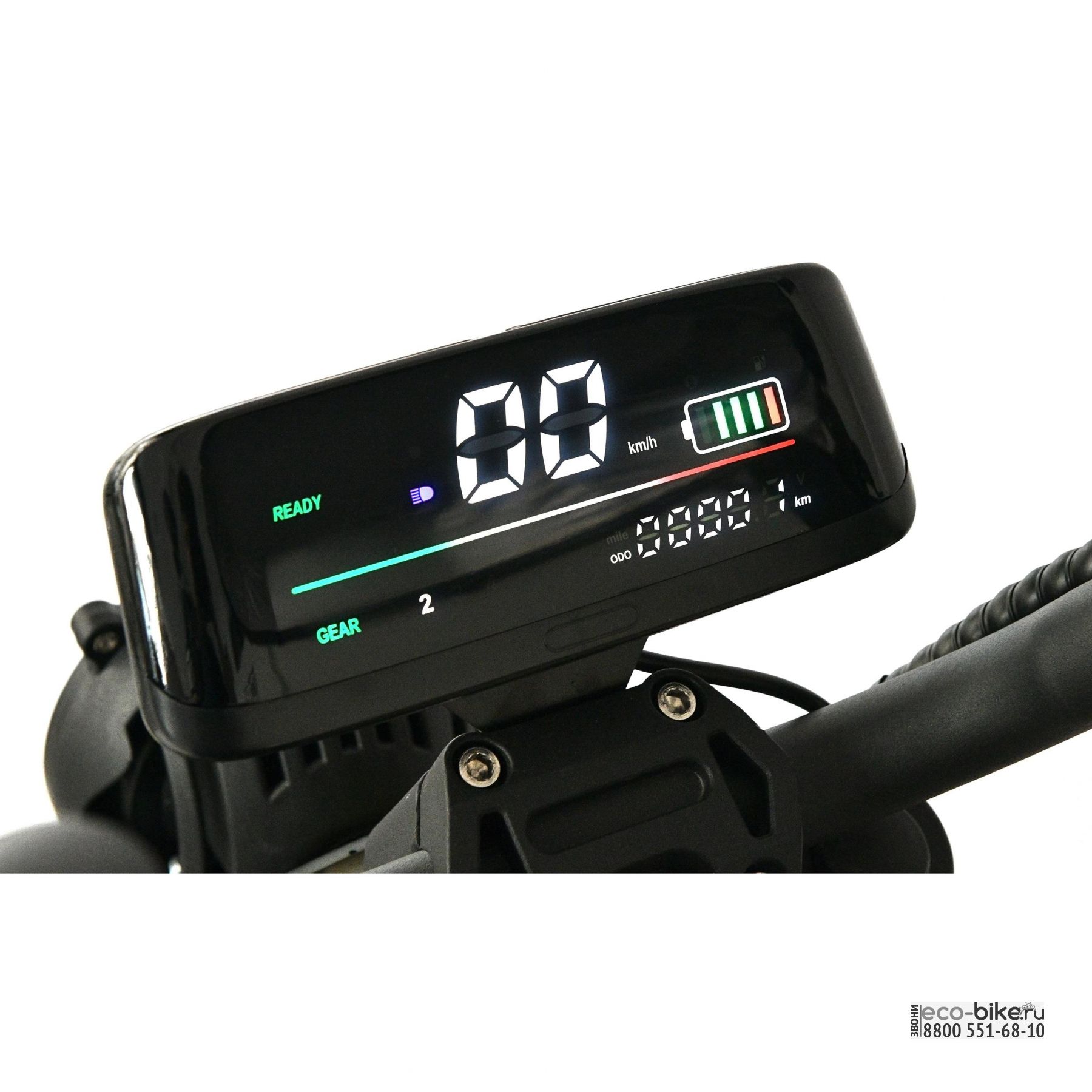 - цветной дисплей расположен в удобном месте над выносом, информацию на нем видно при любом освещении;